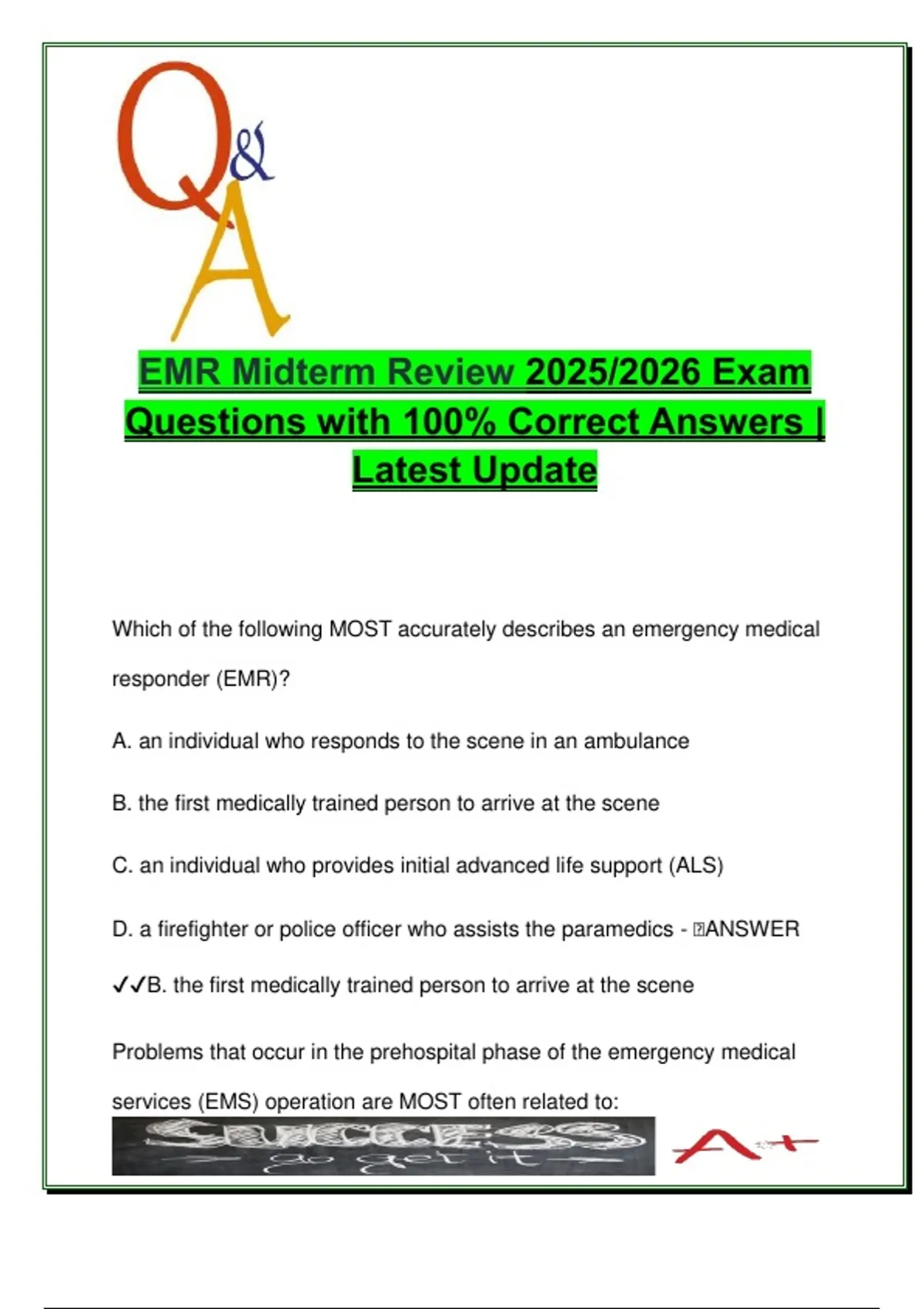, When EMTs or paramedics arrive at the scene of an emergency, the EMR