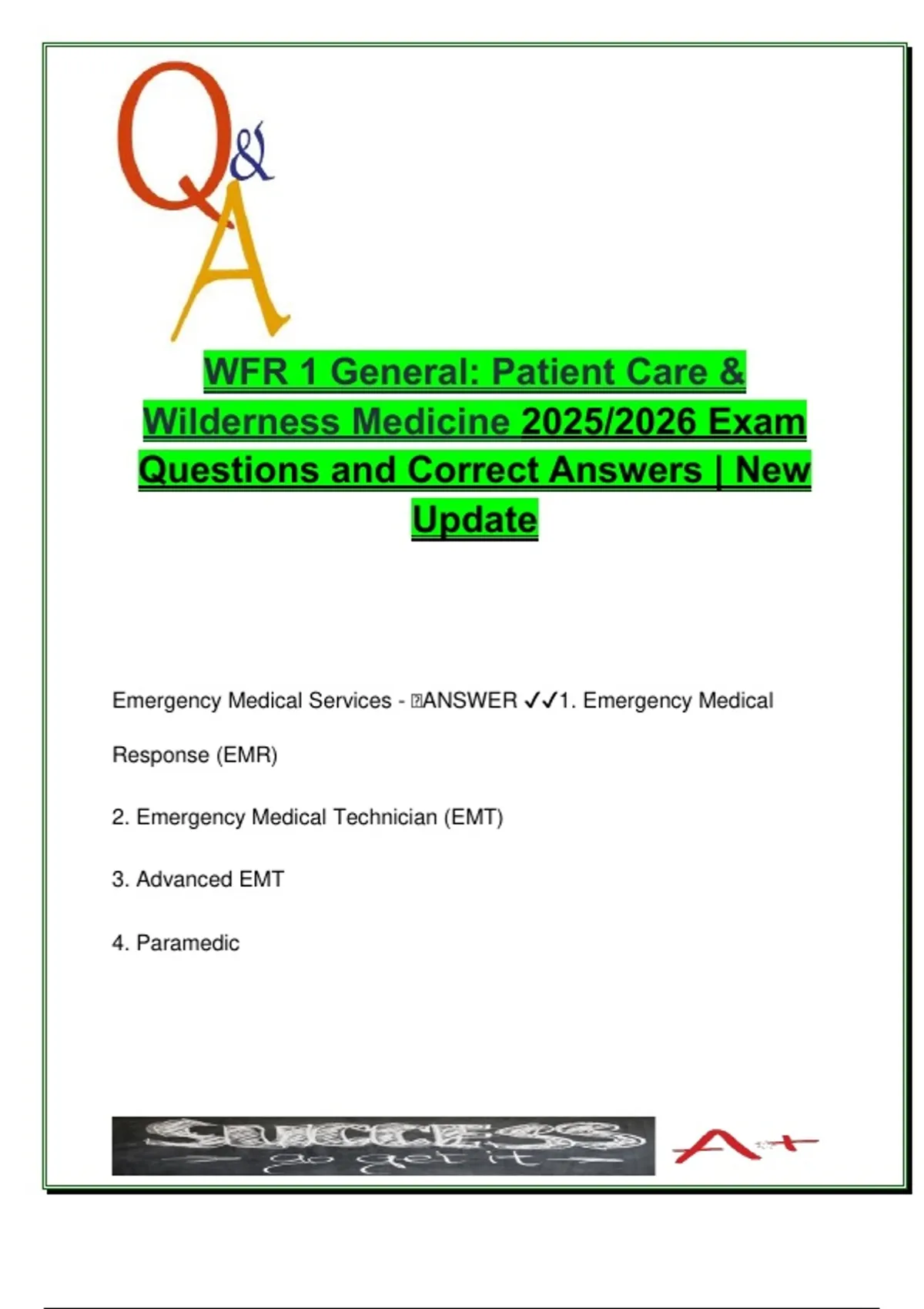 Wilderness Medicine - 🧠ANSWER ✔✔1. Wilderness First Aid