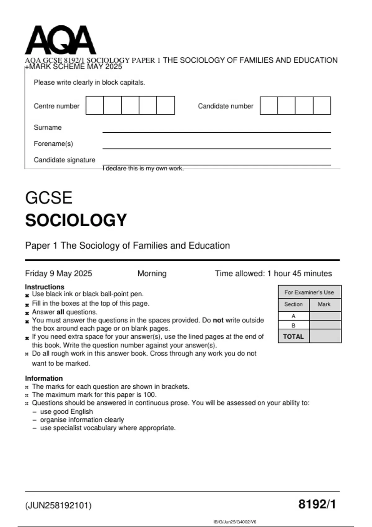 Friday 9 May 2025 Morning Time allowed: 1 hour 45 minutes