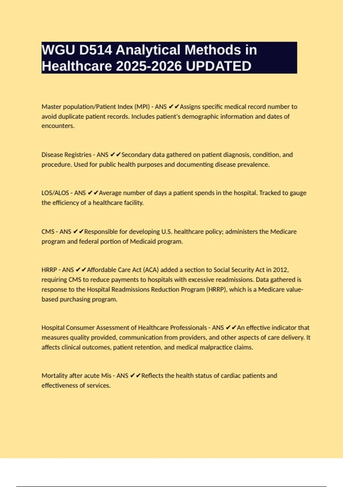 WGU D514 Analytical Methods in Healthcare UPDATED