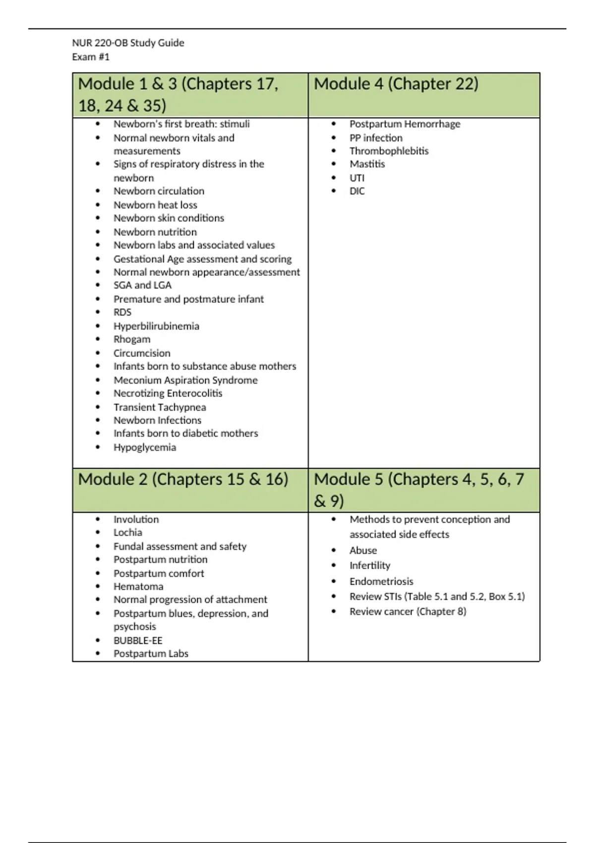 NUR 220-OB Study Guide