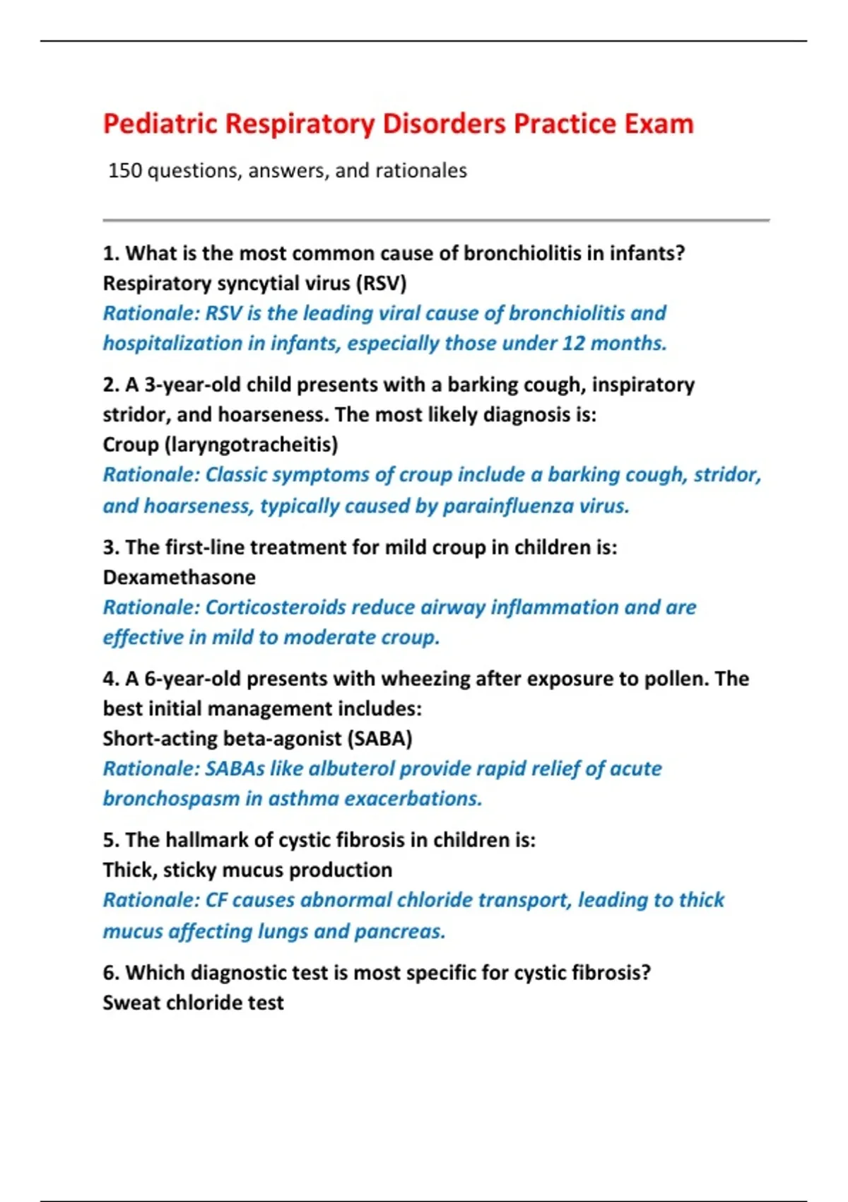 Pediatric Respiratory Disorders Practice Exam