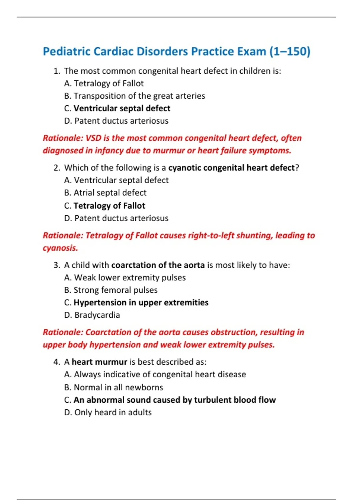 Pediatric Cardiac Disorders Practice Exam (1–150)