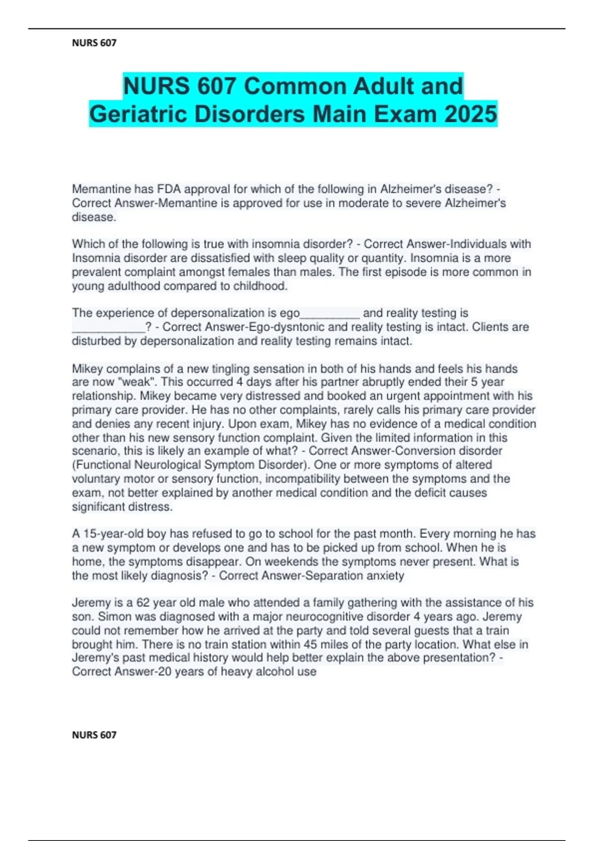 Geriatric Disorders Main Exam 2025