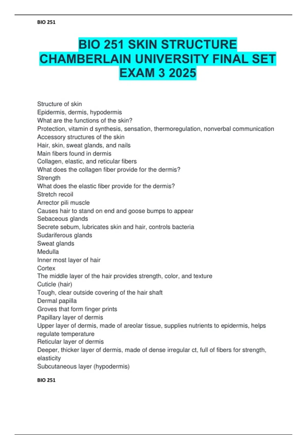 BIO 251 SKIN STRUCTURE