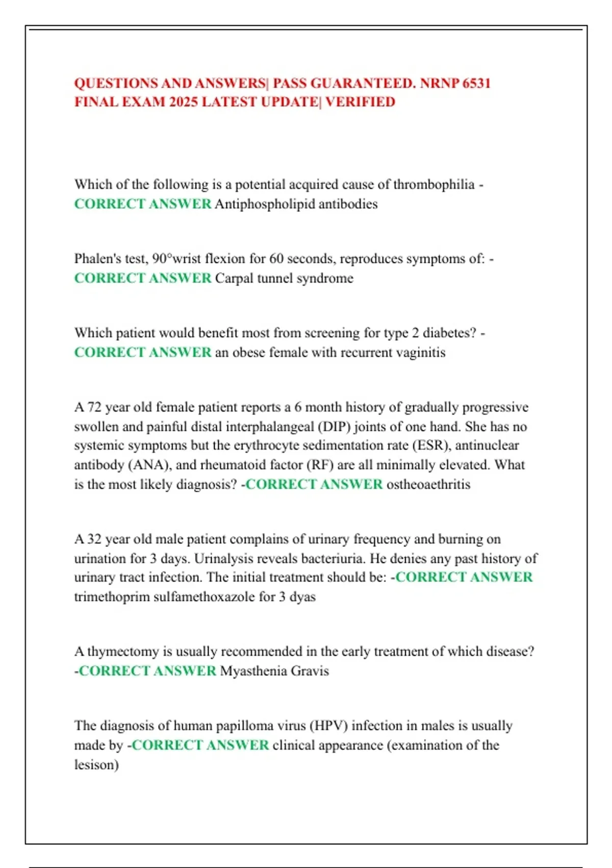 QUESTIONS AND ANSWERS| PASS GUARANTEED. NRNP 6531