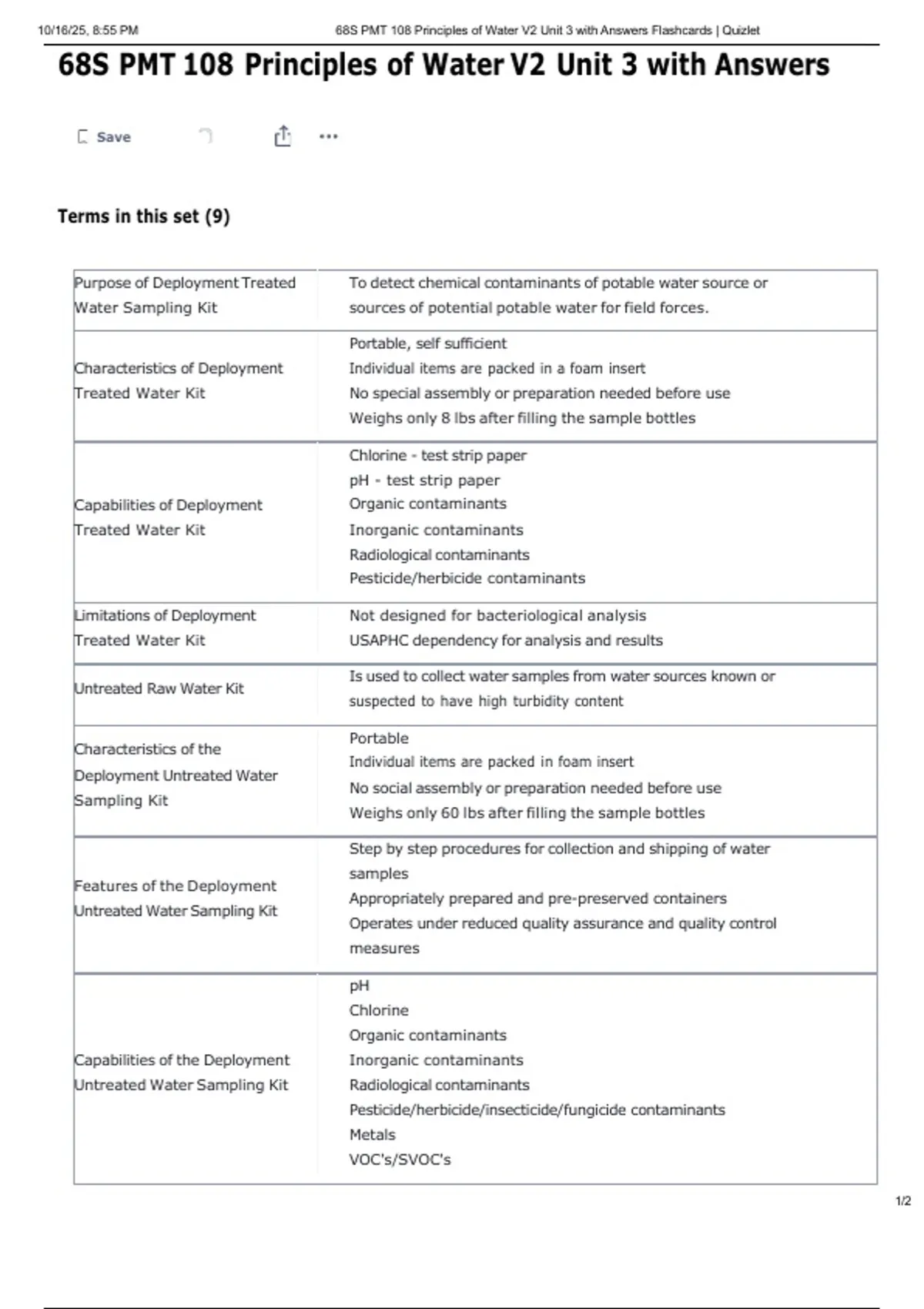 10/16/25, 8:55 PM 68S PMT 108 Principles of Water V2 Unit 3 with Answers Flashcards | Quizlet