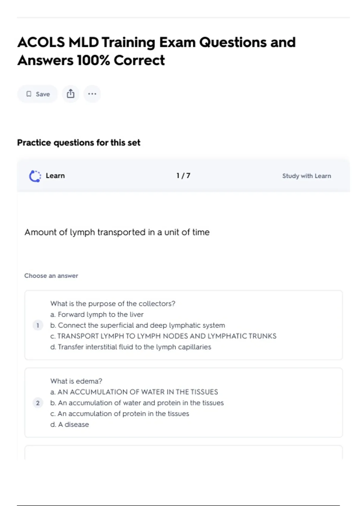 ACOLS MLD Training Exam Questions and Answers 100% Correct