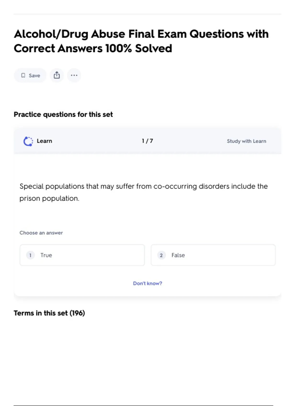 Alcohol/Drug Abuse Final Exam Questions with
