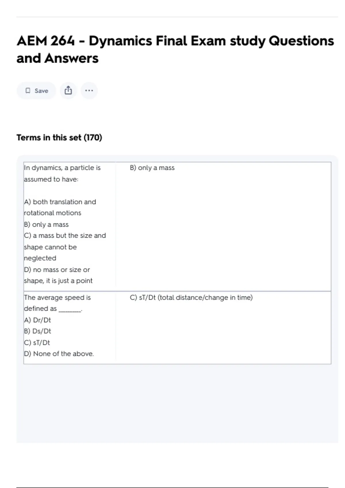 AEM 264 - Dynamics Final Exam study Questions and Answers