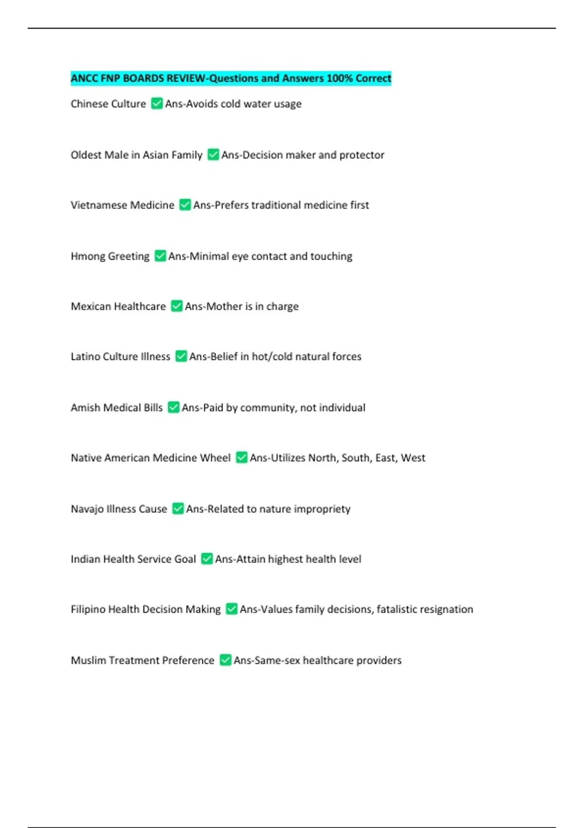 ANCC FNP BOARDS REVIEW-Questions and Answers 100% Correct