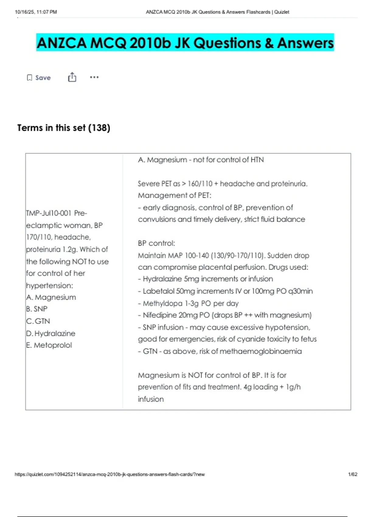 ,10/16/25, 11:07 PM ANZCA MCQ 2010b JK Questions & Answers Flashcards | Quizlet
