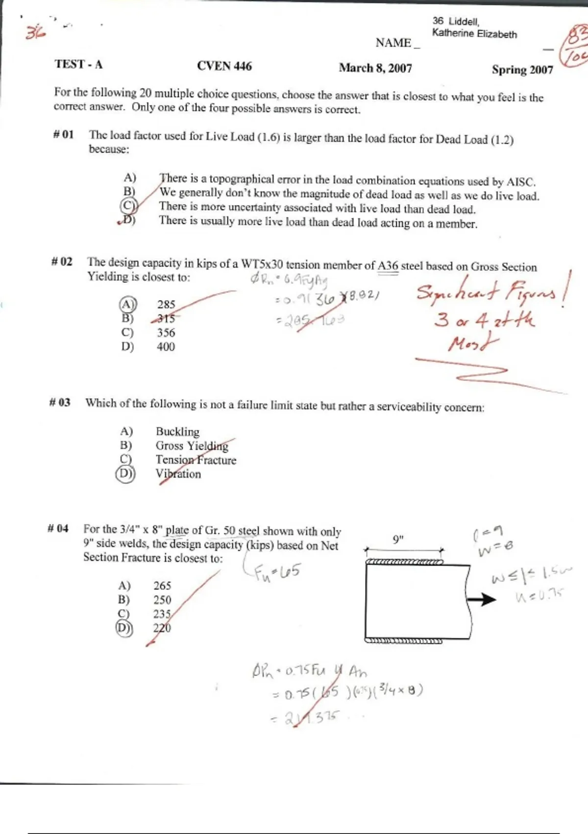 CVEN 446 - Test A EXAM REVIEW UPDATED REVIEW SOLUTION