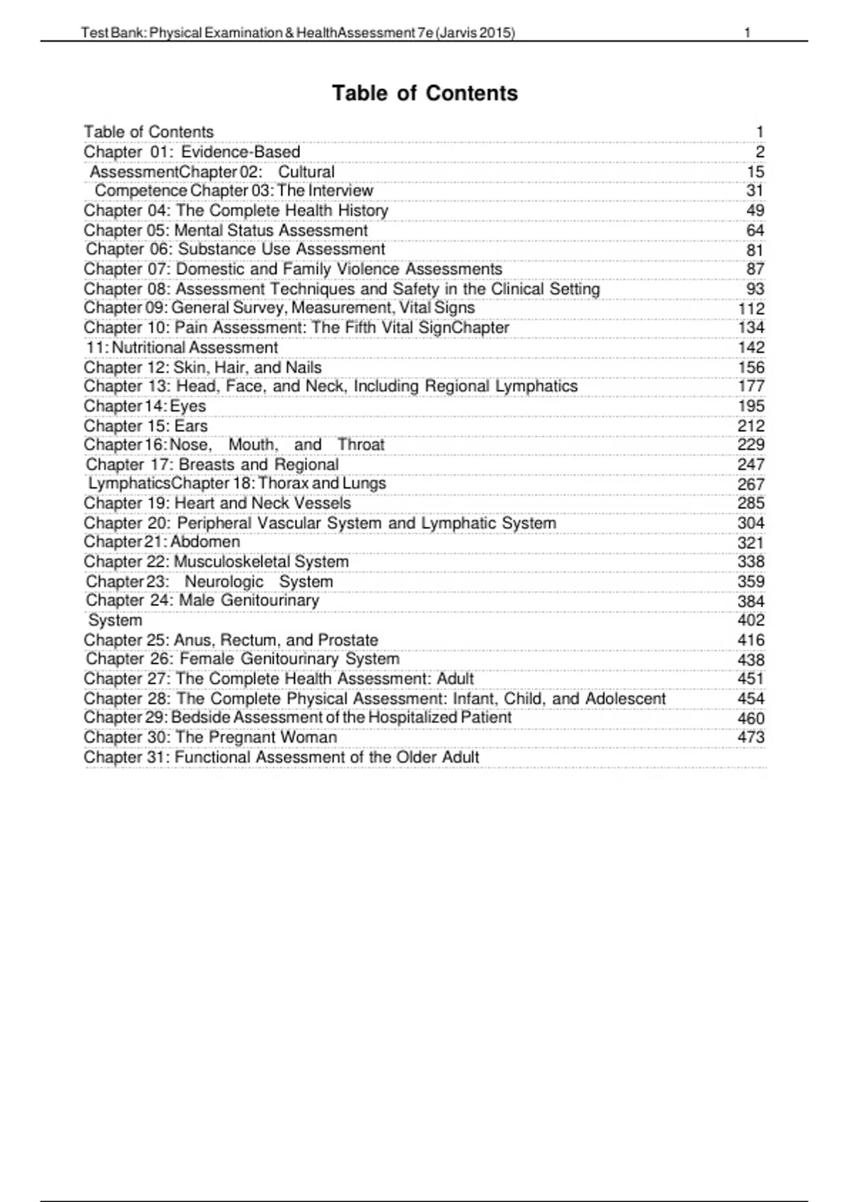 , Test Bank: Physical Examination & HealthAssessment 7e (Jarvis 2015)