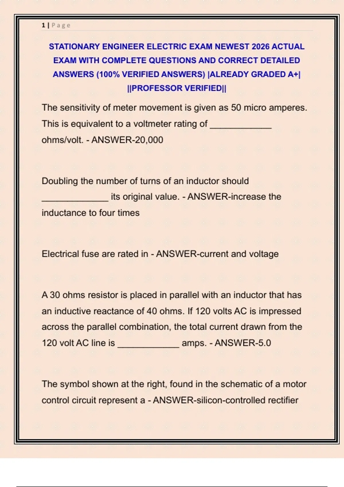 STATIONARY ENGINEER ELECTRIC EXAM NEWEST 2026 ACTUAL