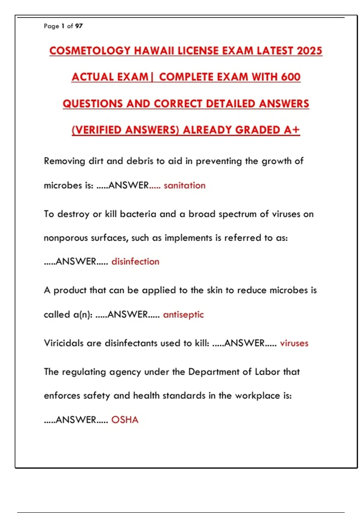 COSMETOLOGY HAWAII LICENSE EXAM LATEST 2025