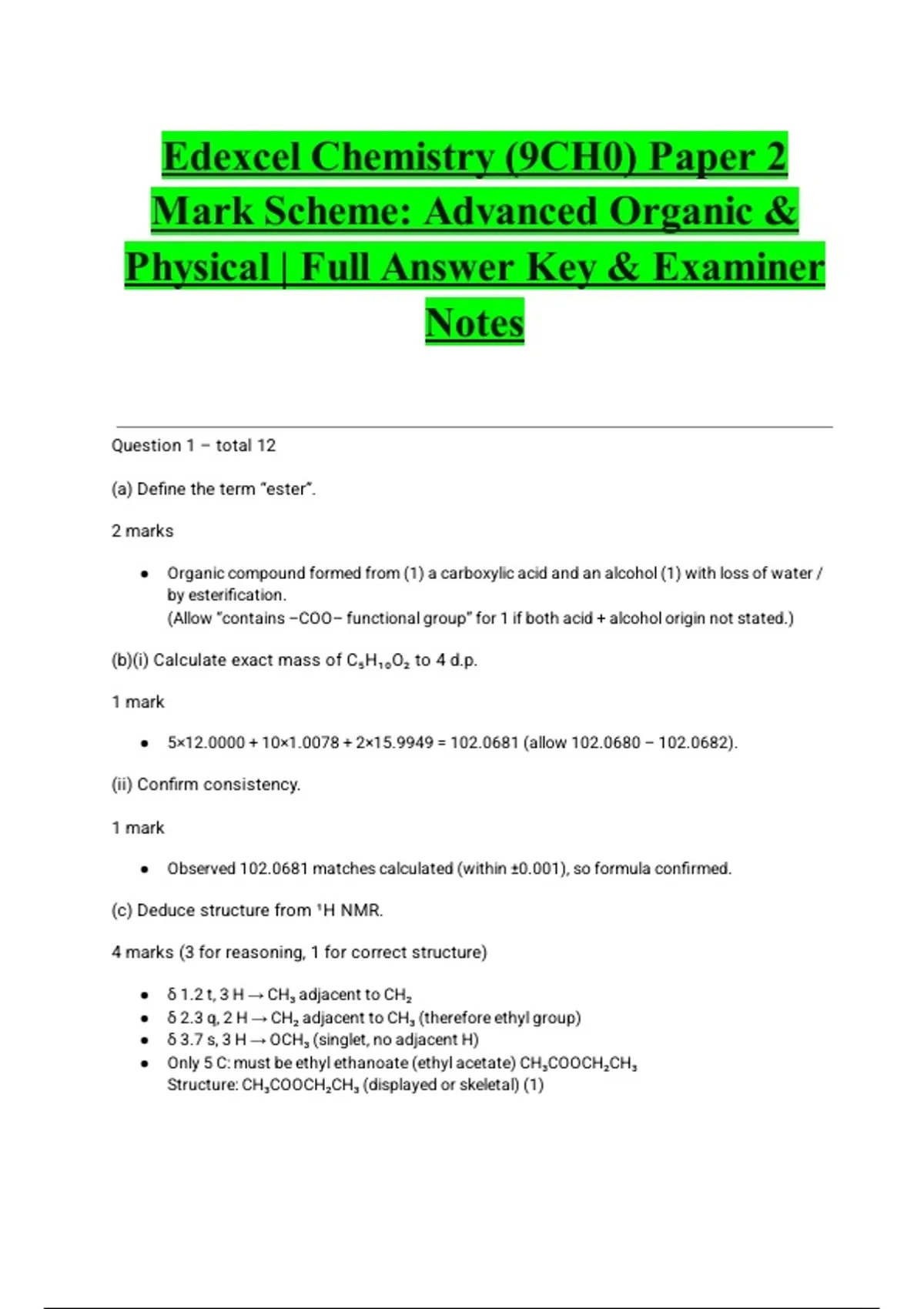 (Allow “contains –COO– functional group” for 1 if both acid + alcohol origin not stated.)
