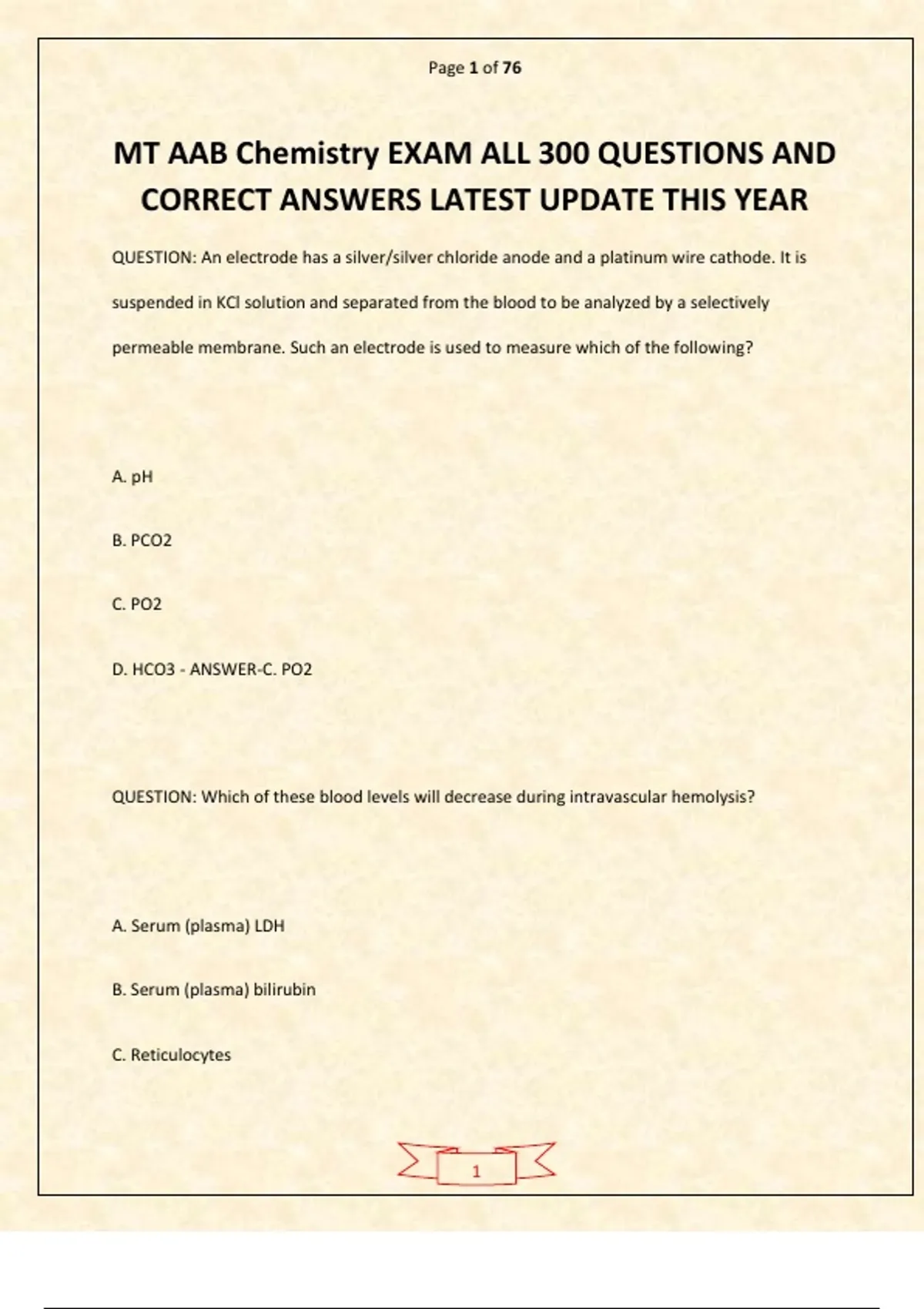 MT AAB Chemistry EXAM ALL 300 QUESTIONS AND