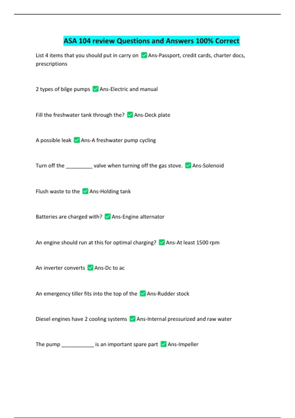 ASA 104 review Questions and Answers 100% Correct