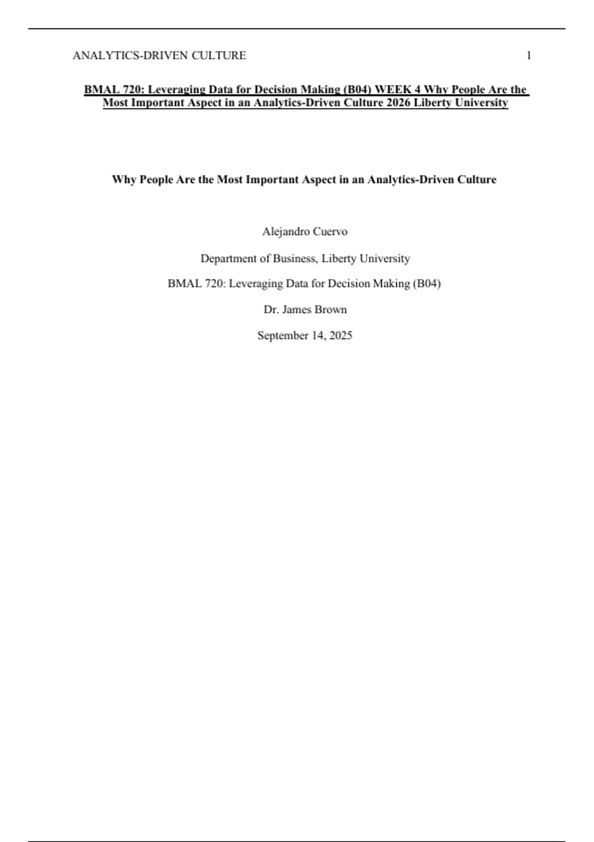 Most Important Aspect in an Analytics-Driven Culture 2026 Liberty University