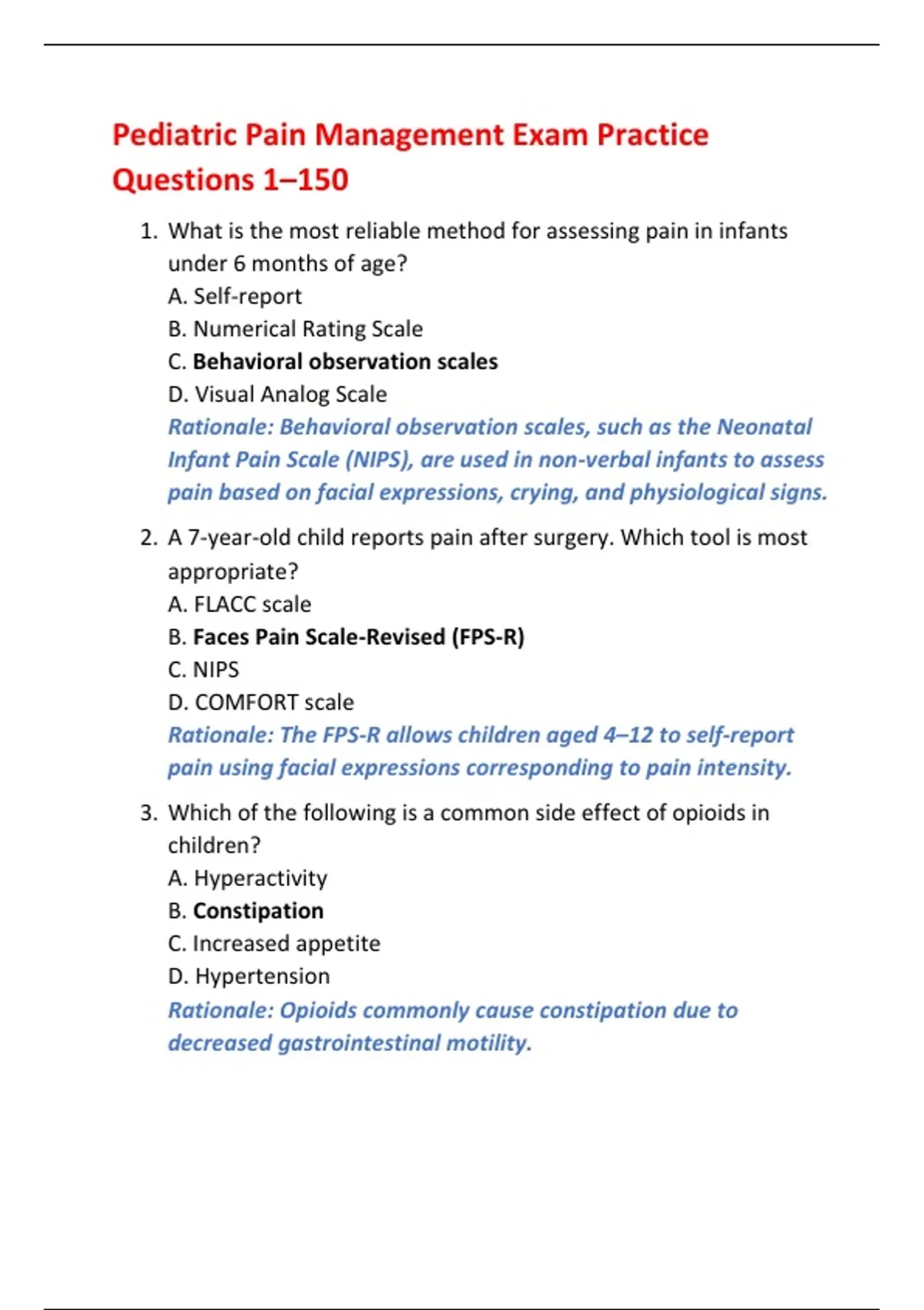Pediatric Pain Management Exam Practice Questions 1–150