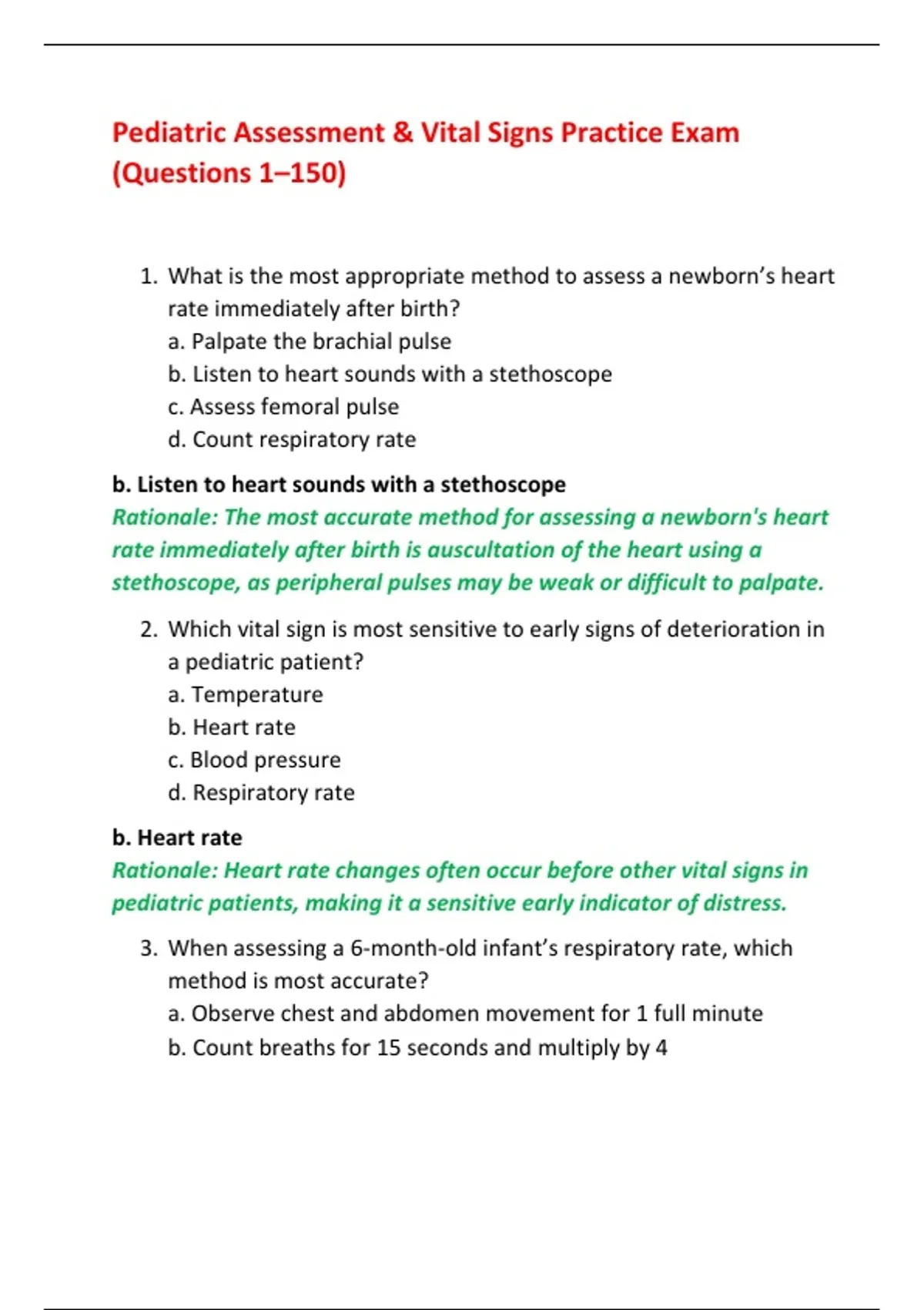 Pediatric Assessment & Vital Signs Practice Exam