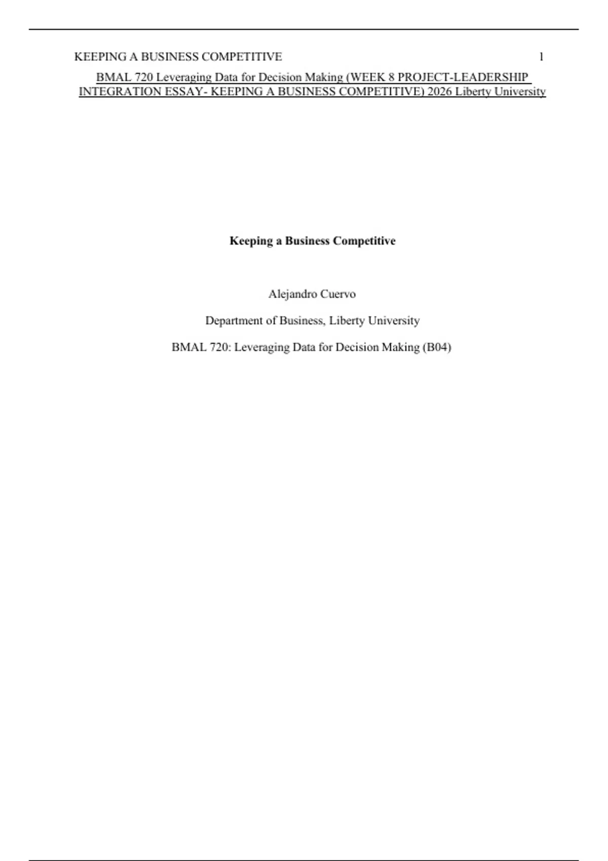 INTEGRATION ESSAY- KEEPING A BUSINESS COMPETITIVE) 2026 Liberty University