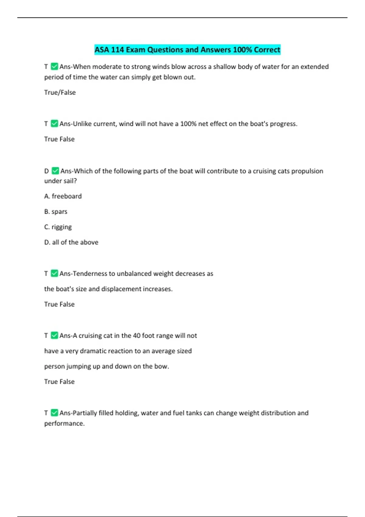 ASA 114 Exam Questions and Answers 100% Correct