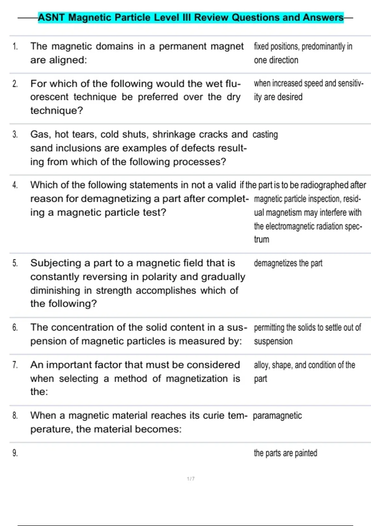 , ASNT Magnetic Particle Level III Review Questions and Answers