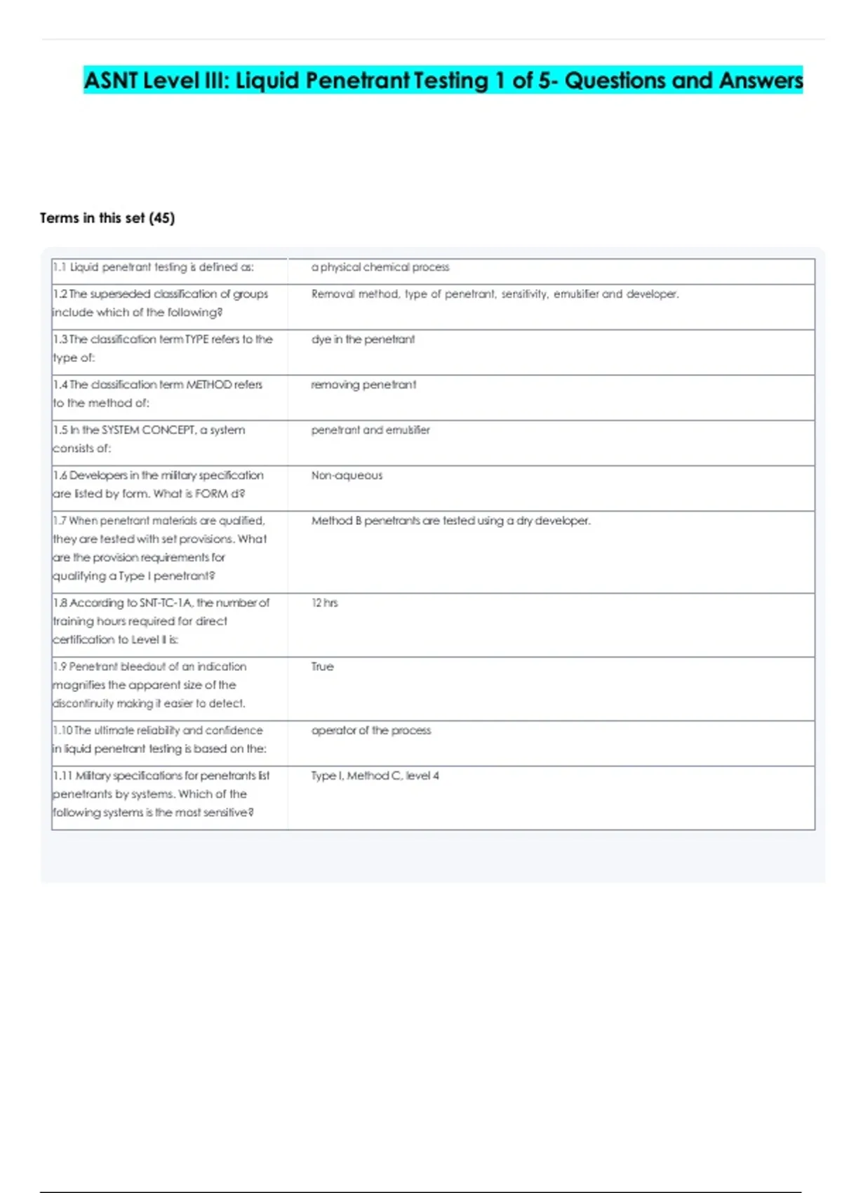 ASNT Level III: Liquid Penetrant Testing 1 of 5- Questions and Answers