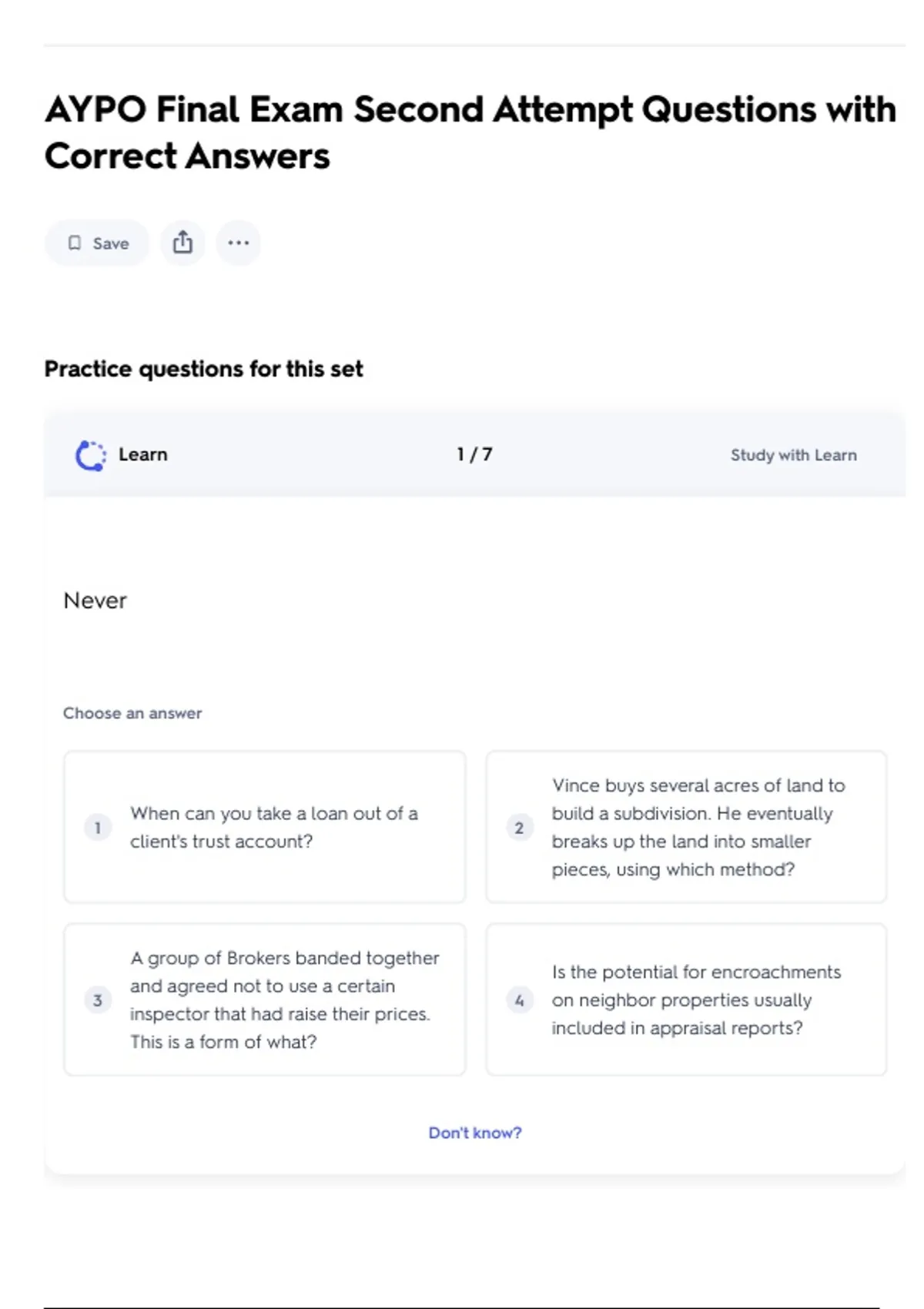 AYPO Final Exam Second Attempt Questions with Correct Answers