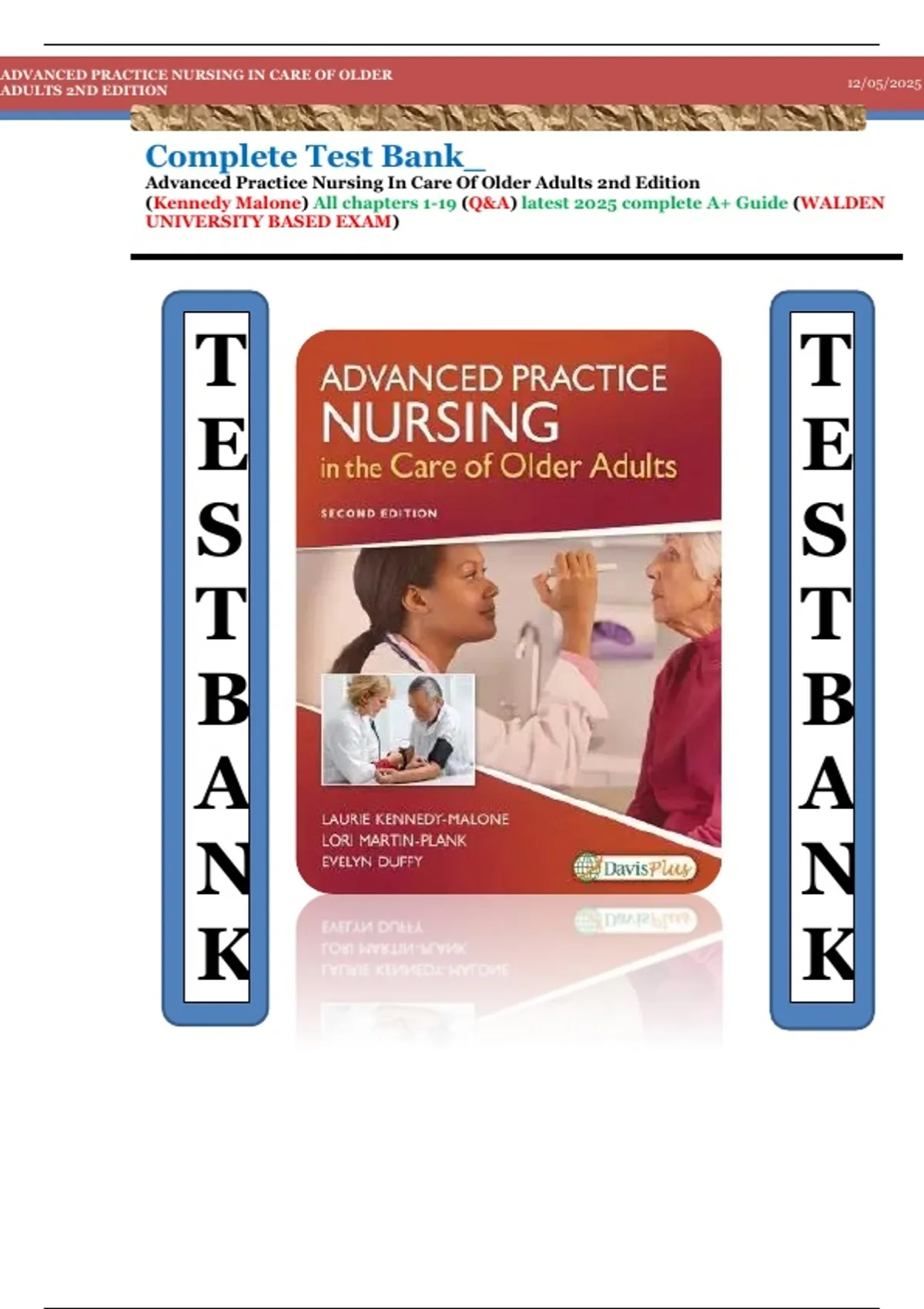 Advanced Practice Nursing In Care Of Older Adults 2nd Edition (Kennedy Malone) All chapters 1-19 (Q&A) latest 2025 complete A+ Guide (WALDEN UNIVERSITY BASED EXAM)