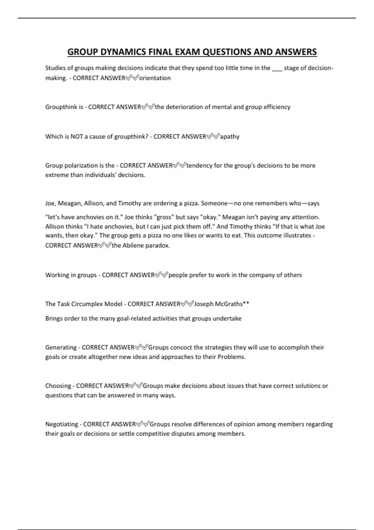 GROUP DYNAMICS FINAL EXAM QUESTIONS AND ANSWERS