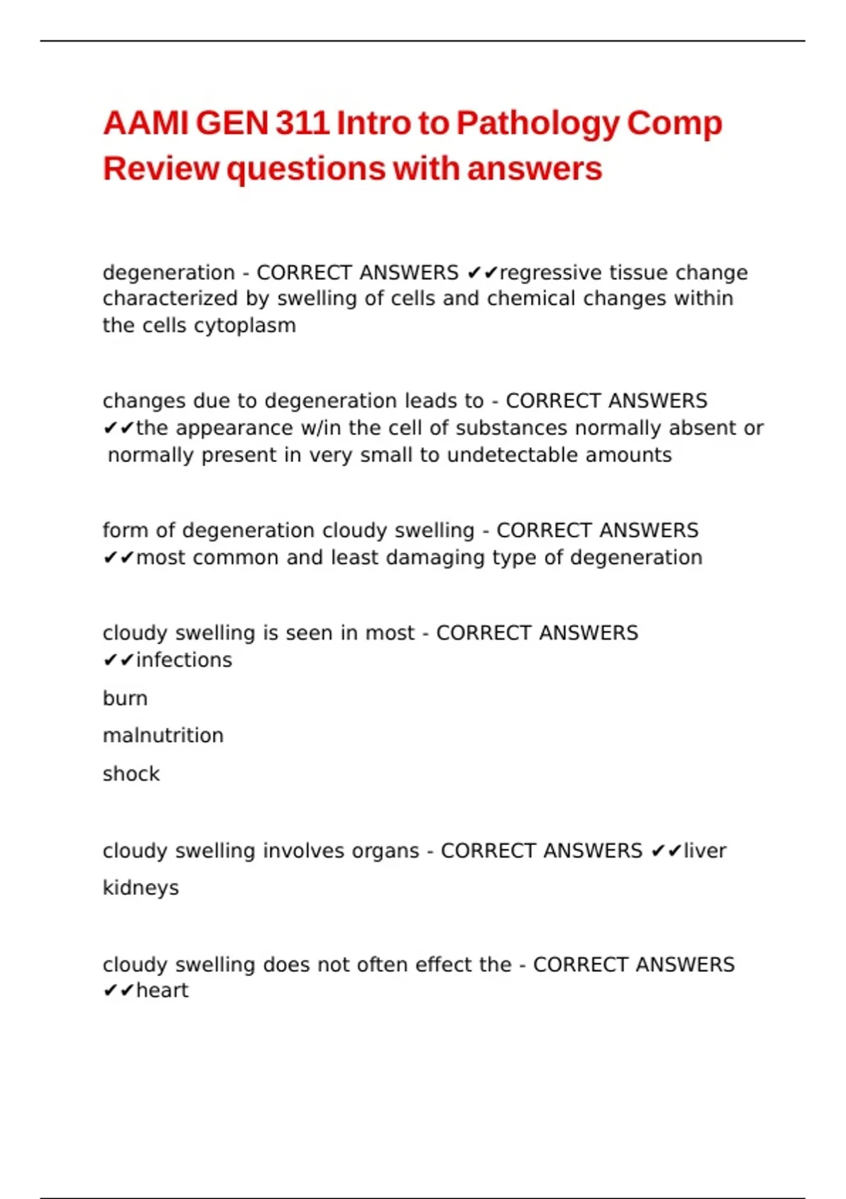 form of degeneration cloudy swelling - CORRECT ANSWERS
