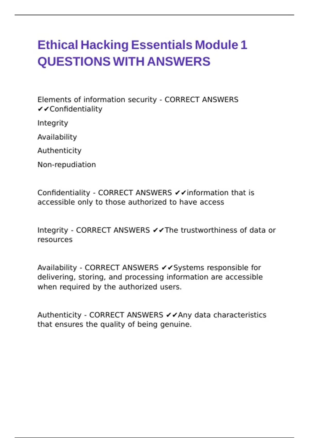 Elements of information security - CORRECT ANSWERS