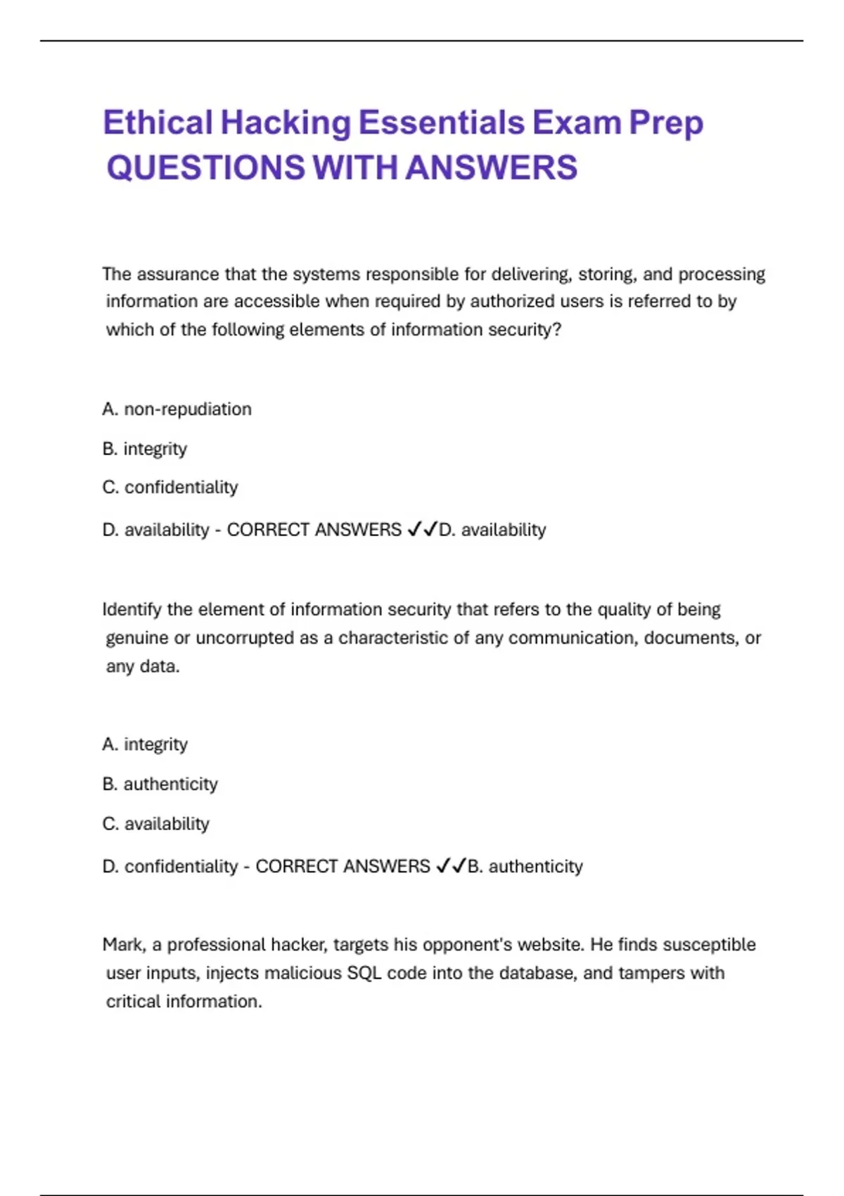 Ethical Hacking Essentials Exam Prep QUESTIONS WITH ANSWERS