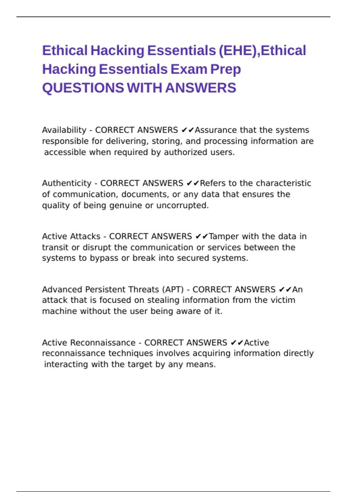 Ethical Hacking Essentials (EHE),Ethical Hacking Essentials Exam Prep QUESTIONS WITH ANSWERS