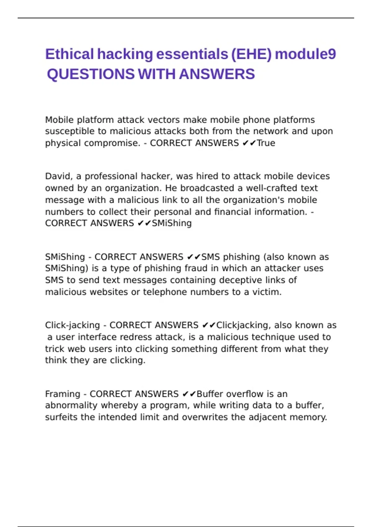 CORRECT ANSWERS ✔✔SMiShing |\ |\
