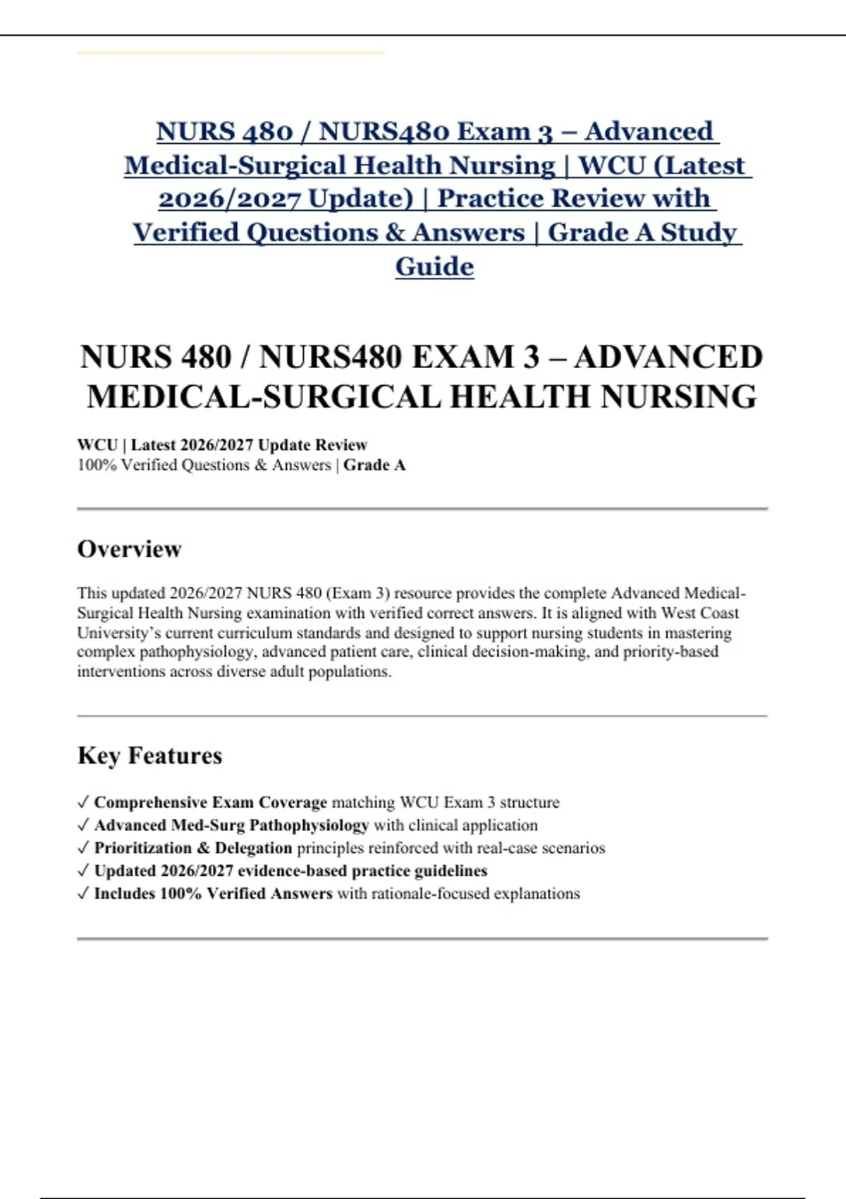 This updated 2026/2027 NURS 480 (Exam 3) resource provides the complete Advanced Medical-
