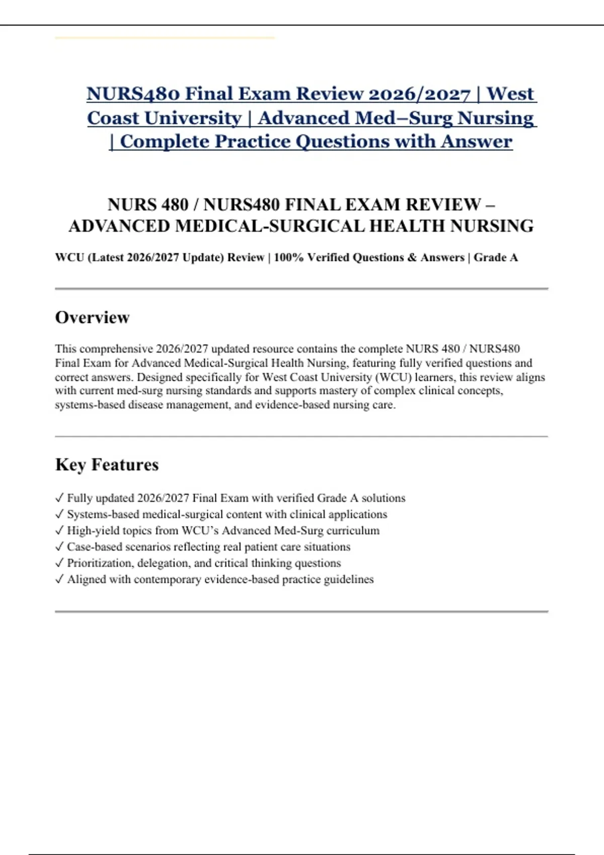 This comprehensive 2026/2027 updated resource contains the complete NURS 480 / NURS480