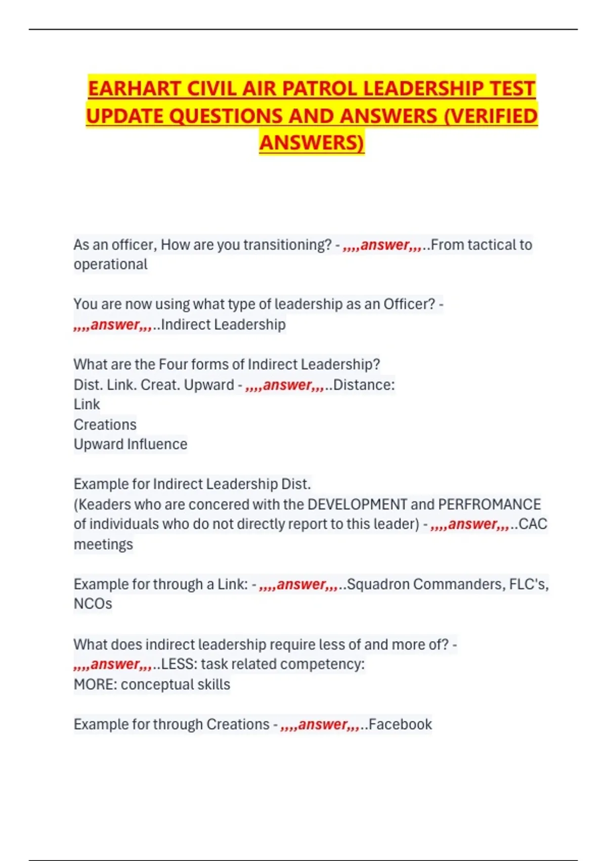 EARHART CIVIL AIR PATROL LEADERSHIP TEST