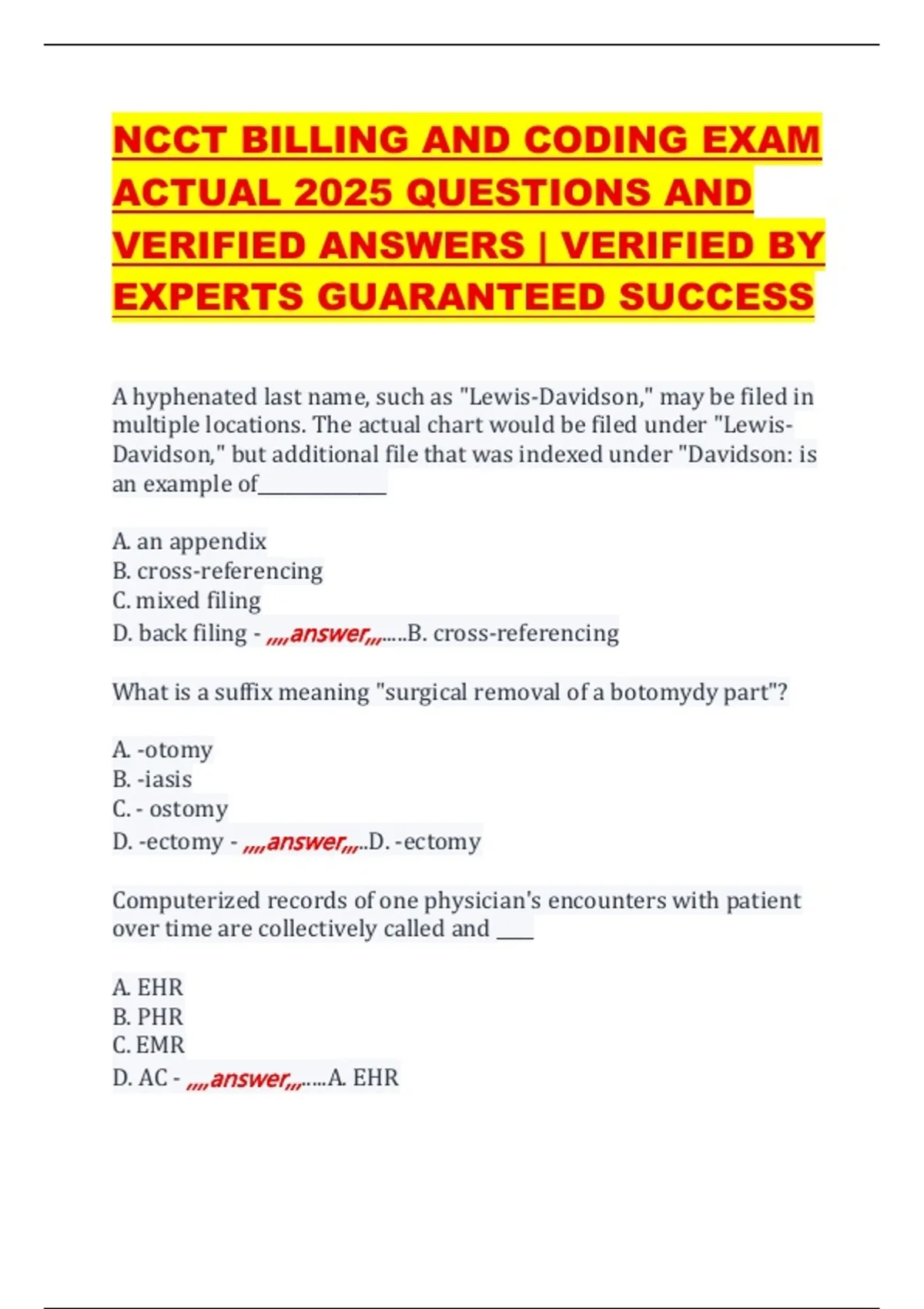 NCCT BILLING AND CODING EXAM