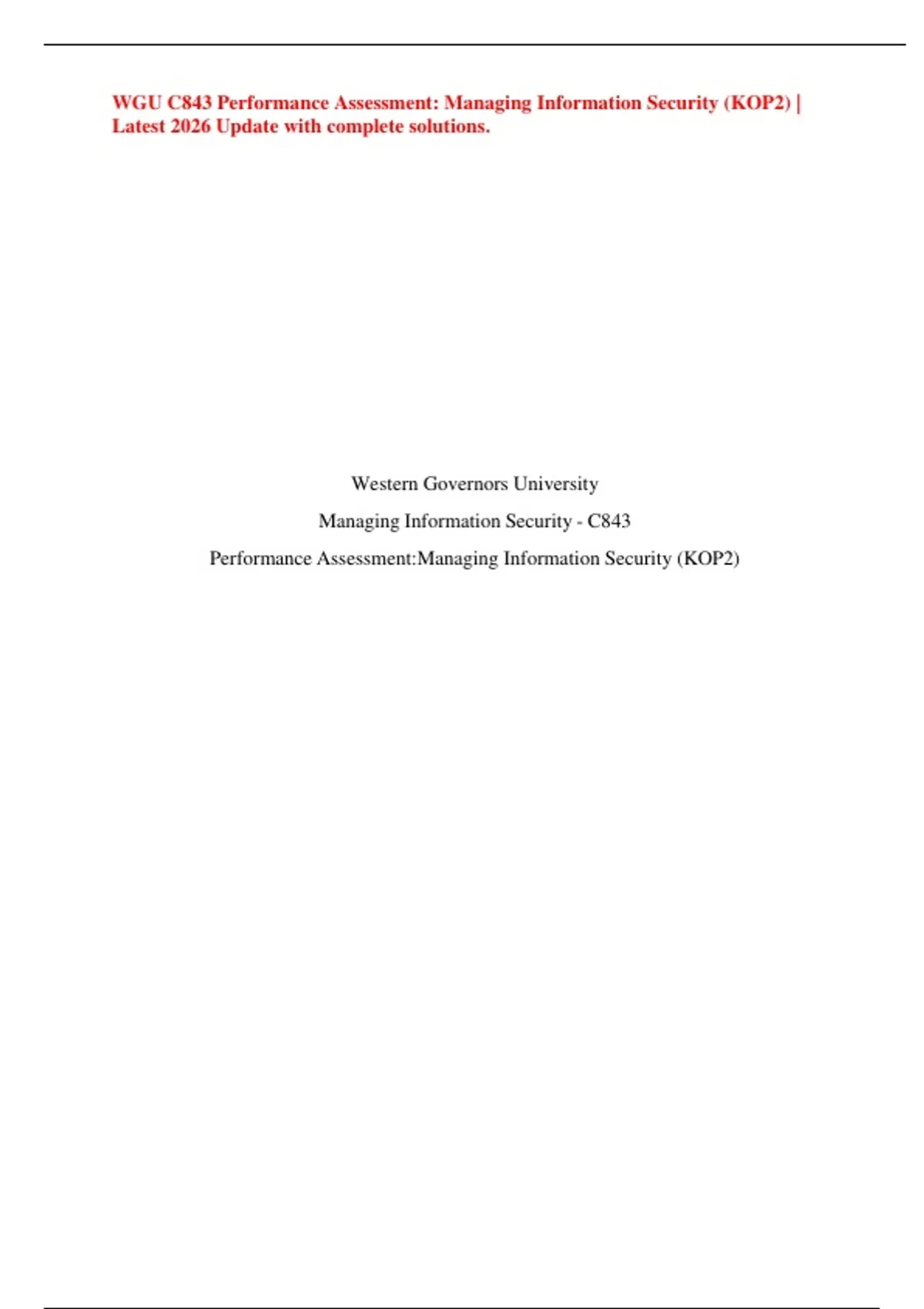 WGU C843 Performance Assessment: Managing Information Security (KOP2) |