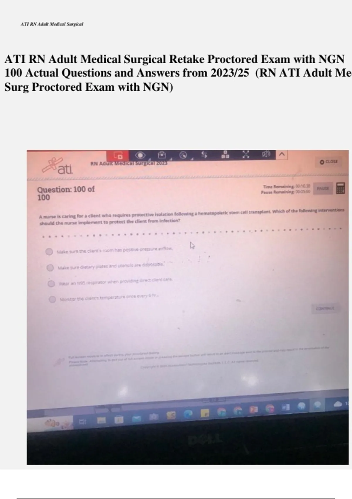 100 Actual Questions and Answers from 2023/25 (RN ATI Adult Med