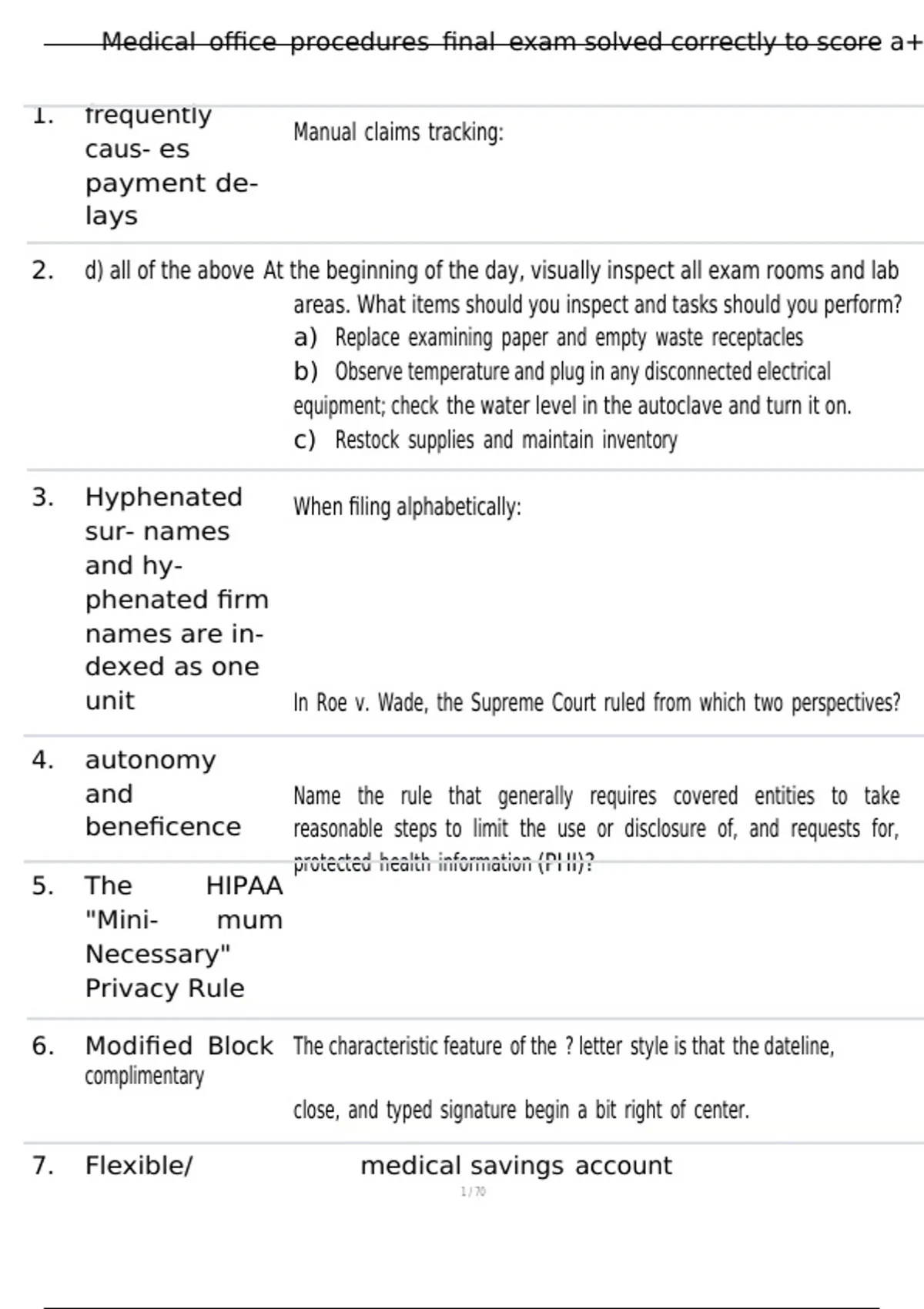 Medical office procedures final exam solved correctly to score a+