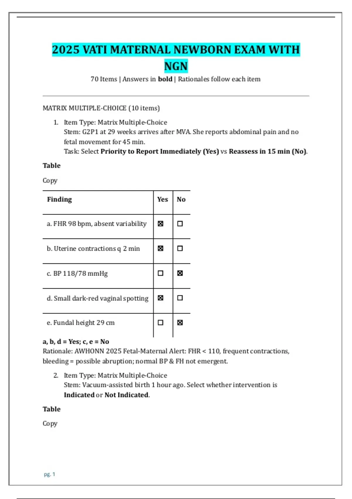 Stem: Vacuum-assisted birth 1 hour ago. Select whether intervention is
