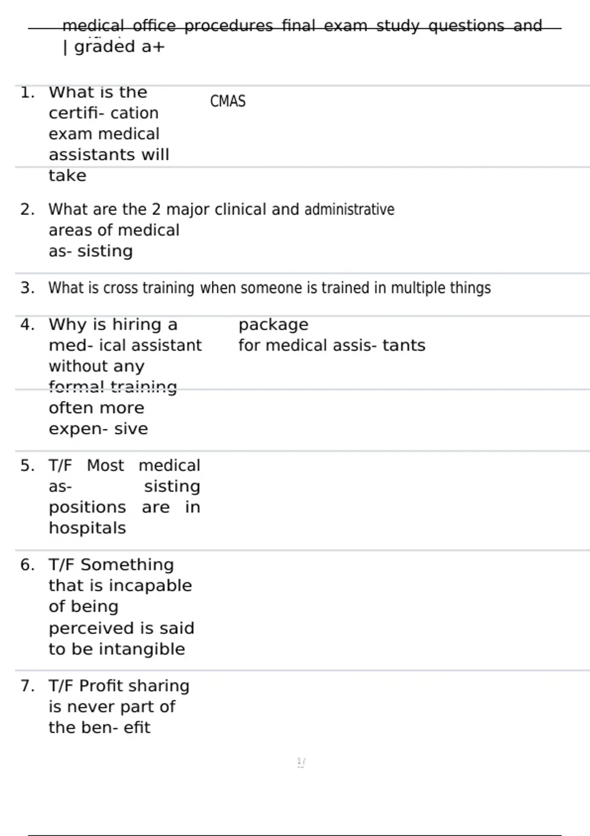, medical office procedures final exam study questions and
