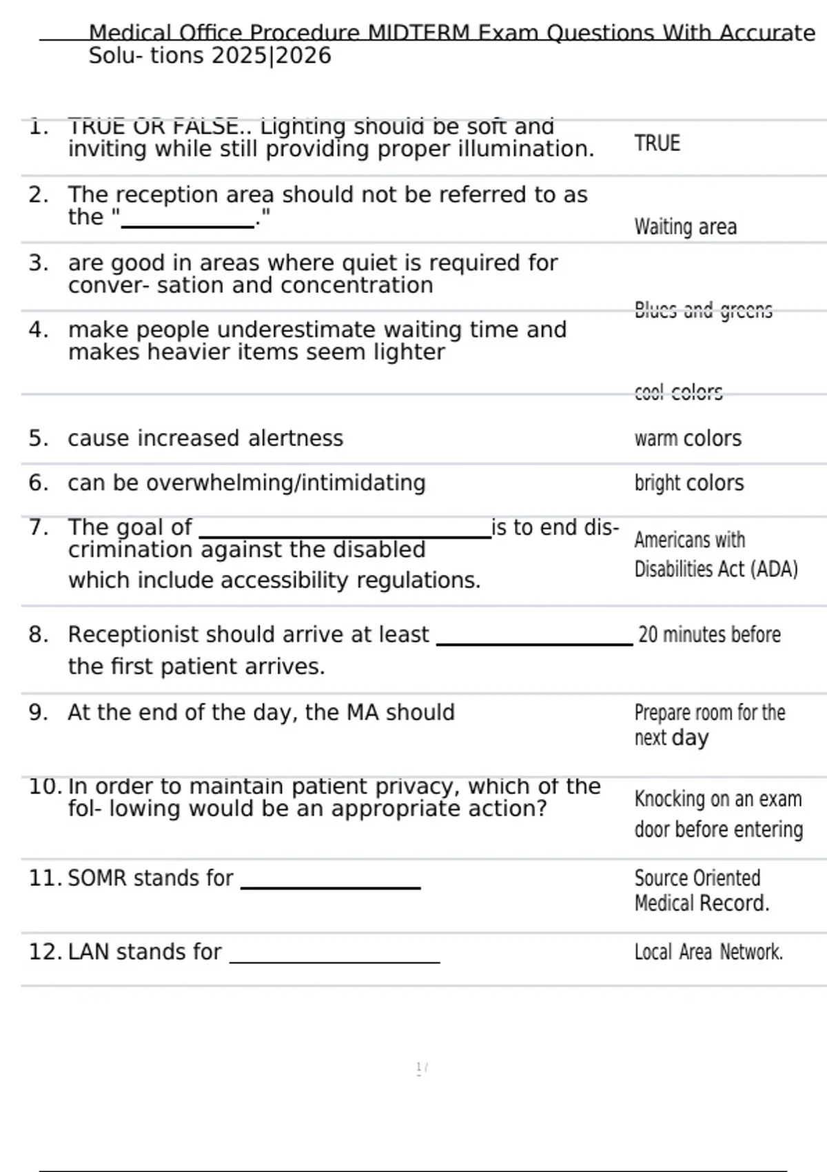 , Medical Office Procedure MIDTERM Exam Questions With Accurate