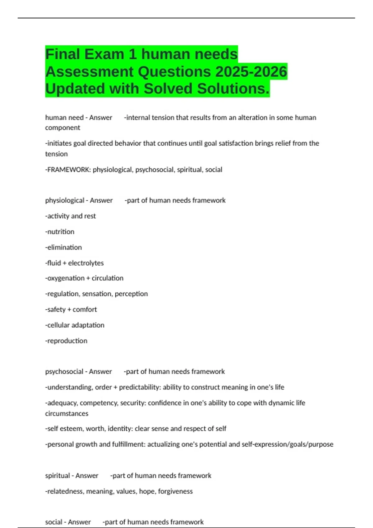 spiritual - Answer -part of human needs framework
