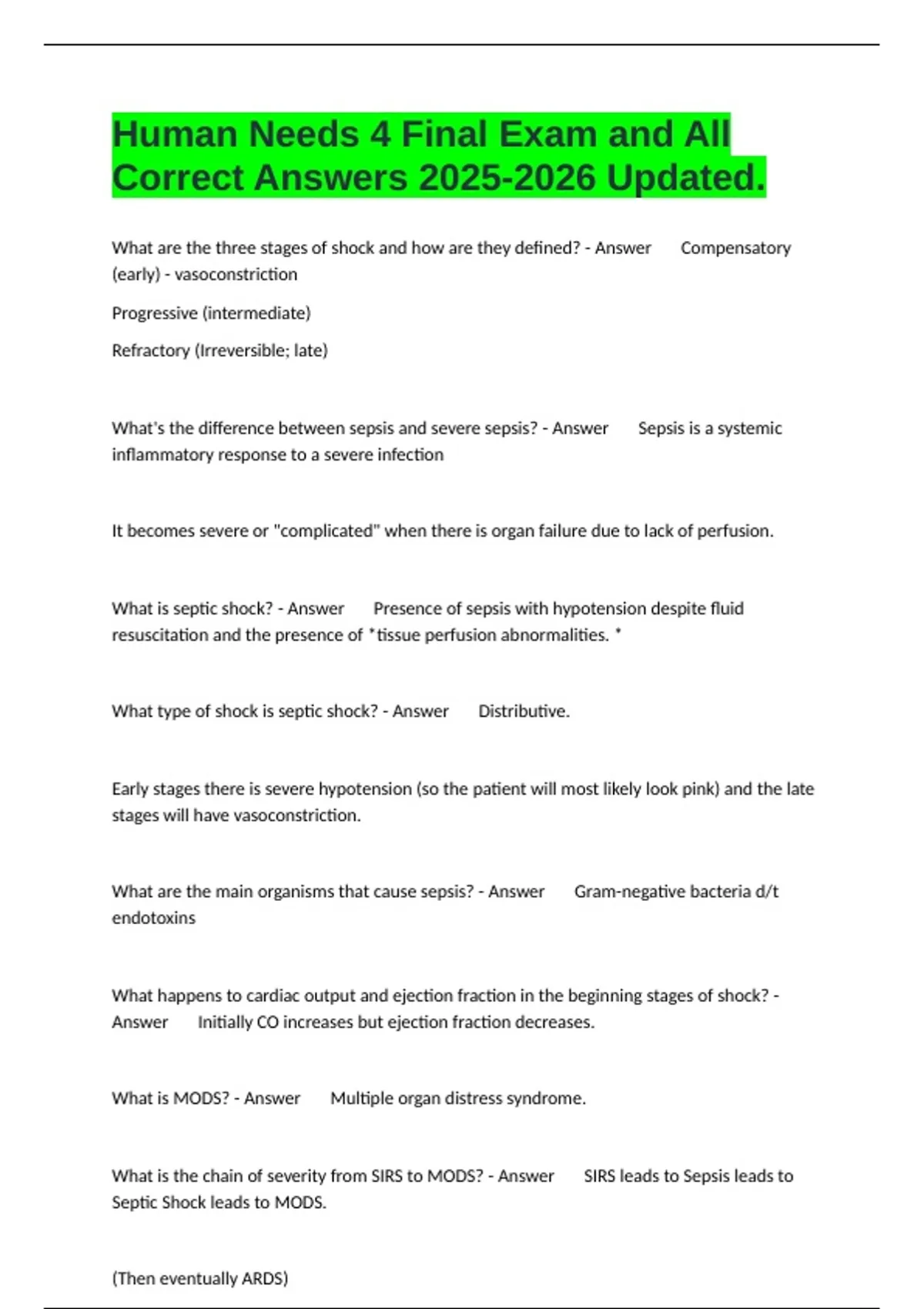 What is MODS? - Answer Multiple organ distress syndrome.